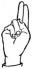 На ћирилици написано АНДРЕЈ ПЕЛАГИЋ састоји се из 13 слова [?]. Исписано ћириличном једноручном азбуком за глувонеме: